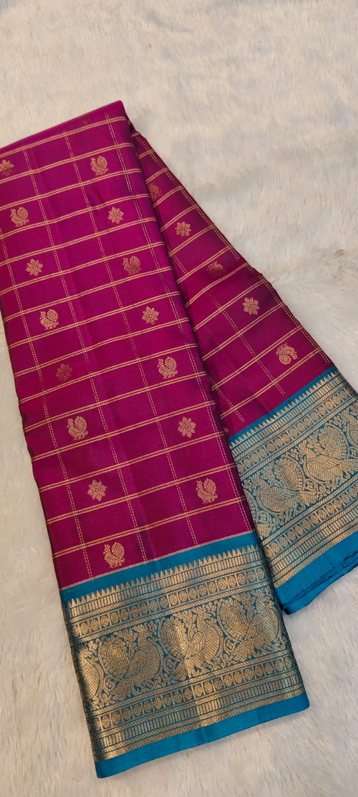 Pure Kanchi Gadwal Vintage Border Saree with Rich Rudraksha Pallu